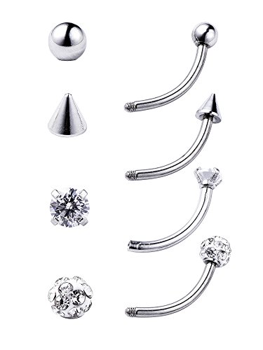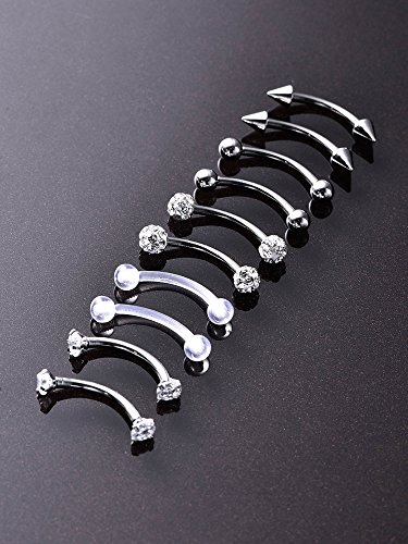 10 Pieces eyebrow ring belly navel studs cubic zirconia tongue lip tragus body piercing jewelry for women, 16 gauge