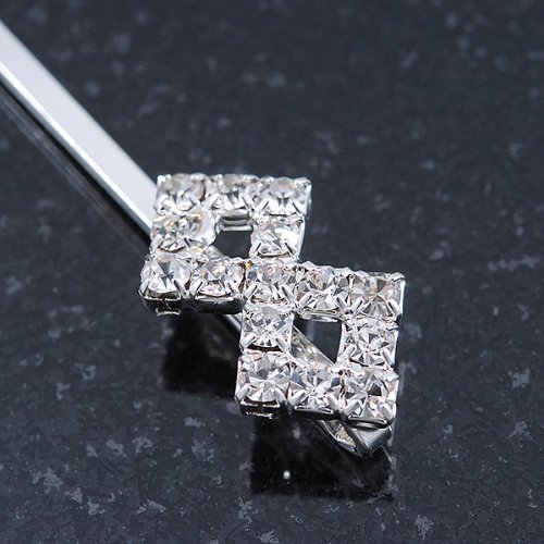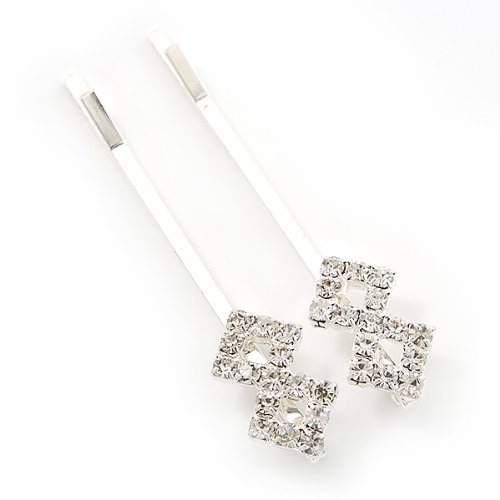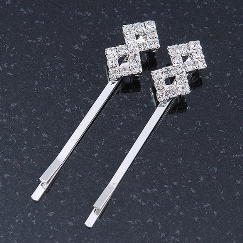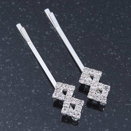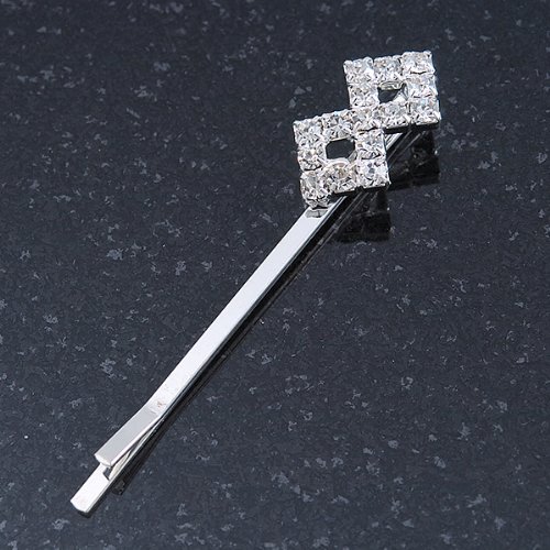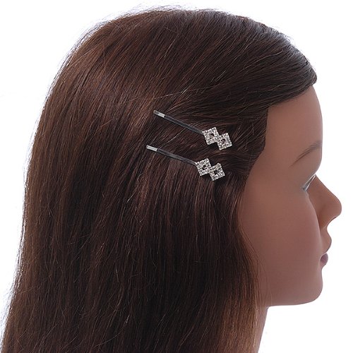 Put the perfect finishing touch to your look with these diamante fancy hair slides. Featuring a pair of hair slides, crafted in rhodium plated metal and accented with clear Diamante. They measure about 55mm in length. These are ideal wedding hair accessories perfect for bridesmaids or brides looking for something not overly complicated.