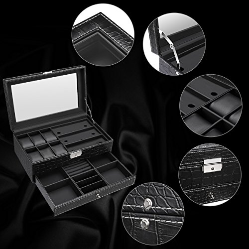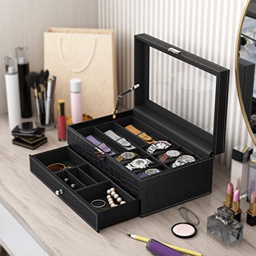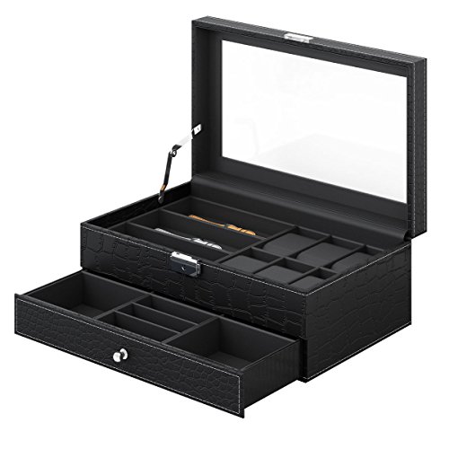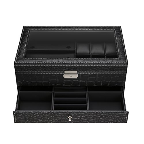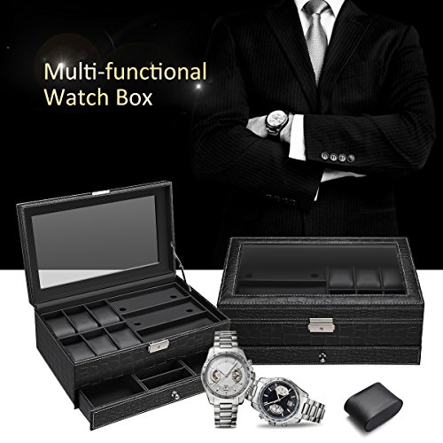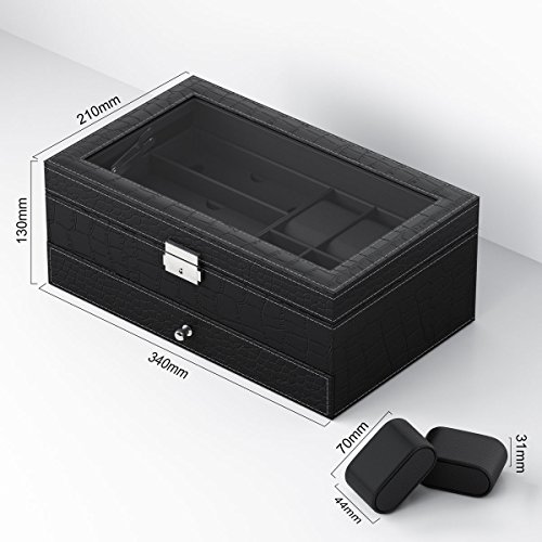 - 6 Large Compartments - Each cushion holds a small or large watch neatly in place. There is lots of space between the lid and cushions to accommodate watches of all size.