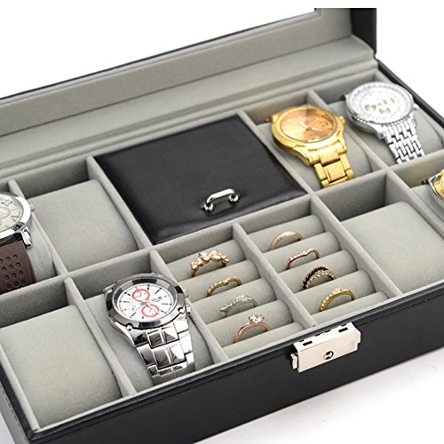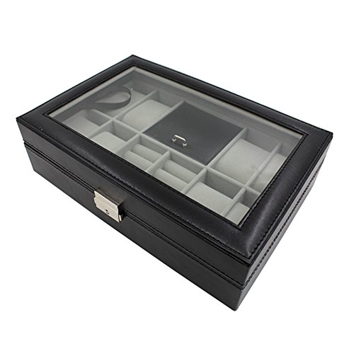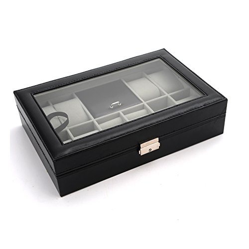 DoubleBlack Jewellery Organiser Watch Box for 8 Watch with Glass Top
