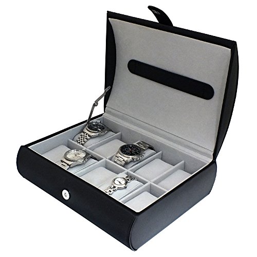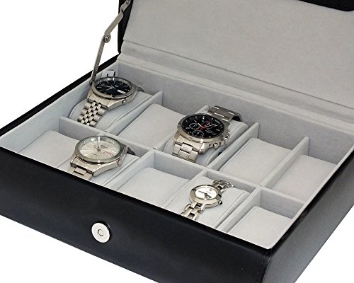 This stylish Gents Genuine Black Bonded Leather 10 Watch Storage Case by Leathersmith of London® has 10 compartments with watch pillows for storing your precious watches.