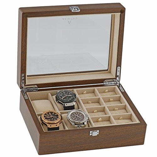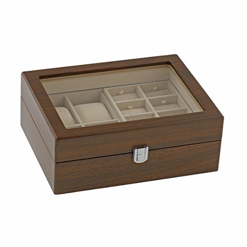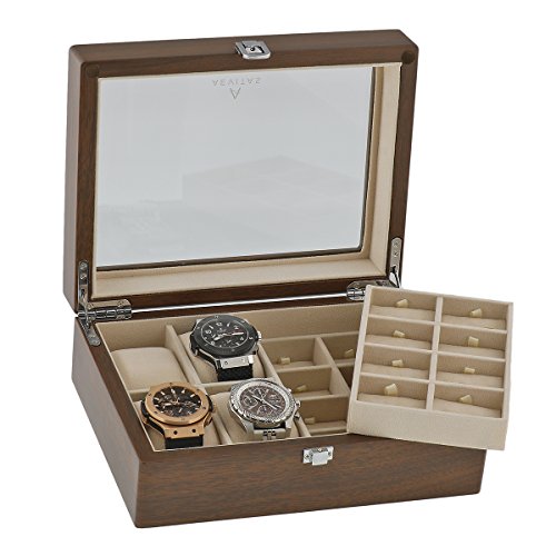 Superb Quality and Design, the luxury look of this Natural Walnut Wood watch box and 16 pairs of cufflinks is just perfect. It will hold neatly up to 4 wrist watches in the soft yet firm cushion in the position you set them. Glass View through lid with push button catch. Chrome fittings for the modern classic look.